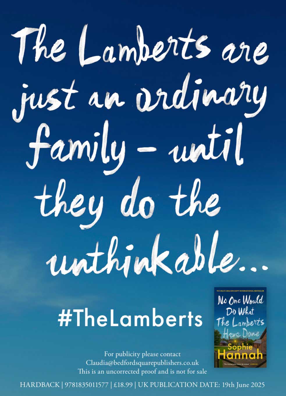 “An incident involving a dog in a small village escalates to an all-out conflict, turning neighbour against neighbour, and culminating in murder. But who did it? Who was it done to? You’ll have to read to the final line to find out! Hugely entertaining and infectiously funny, this joyous adventure is one of Sophie Hannah’s very best books. A delight from start to finish.”